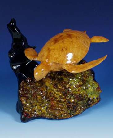 Afzelia Burl, and the base is Rock Maple Burl.
